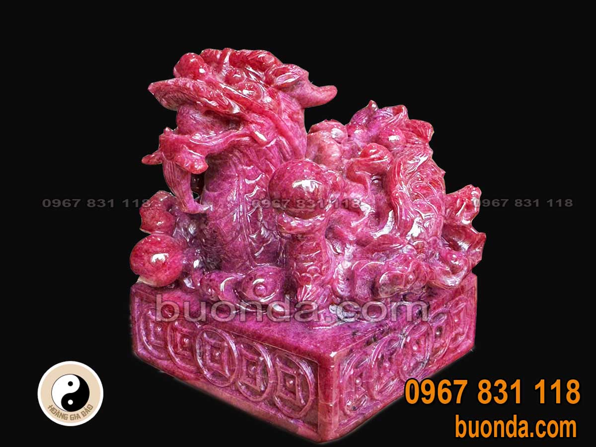 Ấn rồng phong thủy bằng đá Ruby, thạch anh, thạch anh tóc.