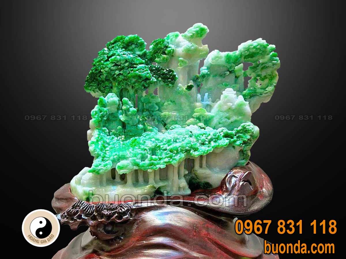 Tác phẩm chạm khắc từ đá quý màu xanh ngọc quý hiếm với hình tượng rừng cây thể hiện ý nghĩa sức sống vô vùng mãnh liệt, sự kiên cường bất khuất, sự trường thọ may mắn. Màu xanh lá cây trong phong thủy mang ý nghĩa sự sinh sôi